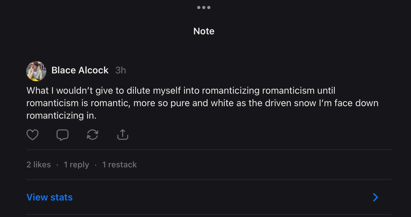 Did you see? Did you see? I don’t think this would have been written without a healthy dose of Dylan-posting. Like Shit-posting but you don’t know what is being said the longer it goes on. A veritable monster in the closet of ideas I’ve conjured. Take that Stefan Baciu! I still had another monster left before the new year broke down my door Jack Torrance style. My notepad is a gateway for the Goetia paired best with red candles and coffee to appease the more beastial ones. Trust, they know what Cocaine is but prefer sweet sweet Arabica juice. Now! Back to work I go.